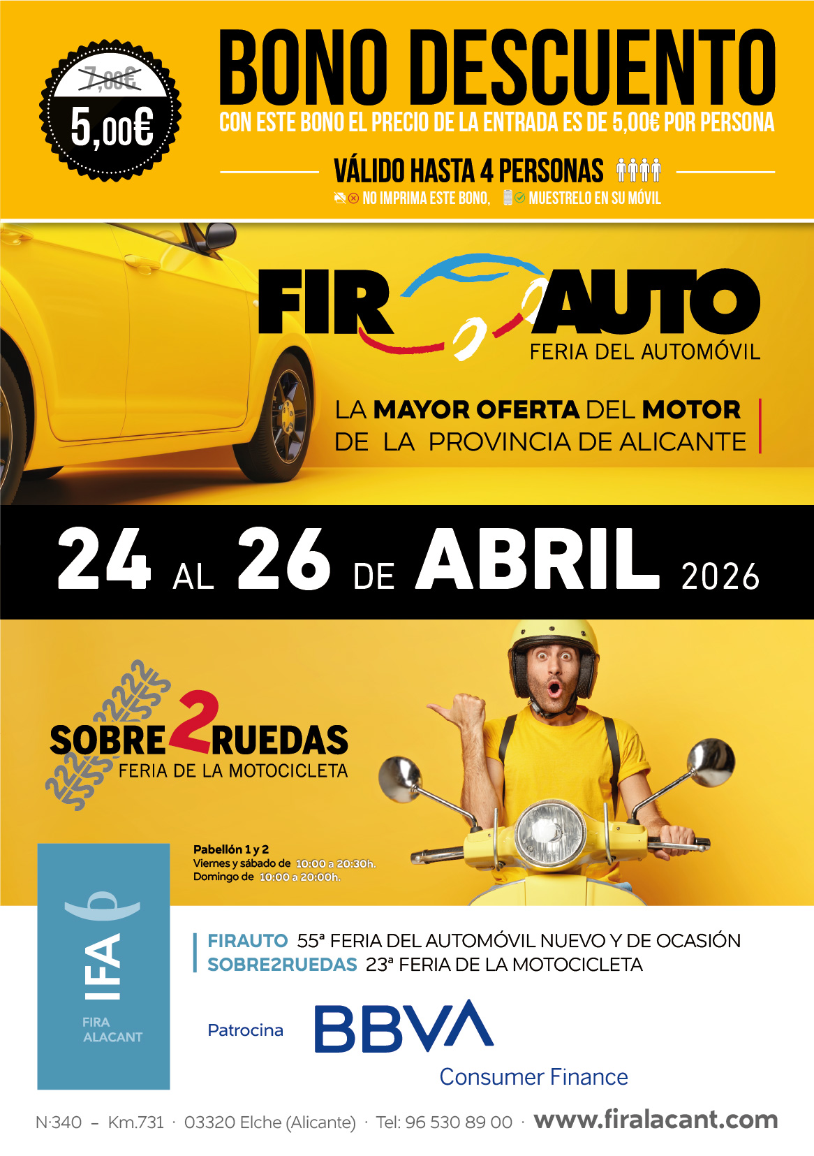 Del 20 al 22 de abril tendrá lugar la 56ª edición de FIRAUTO, la Feria del Automóvil Nuevo y Ocasión y la 24ª edición de SOBRE 2 RUEDAS.